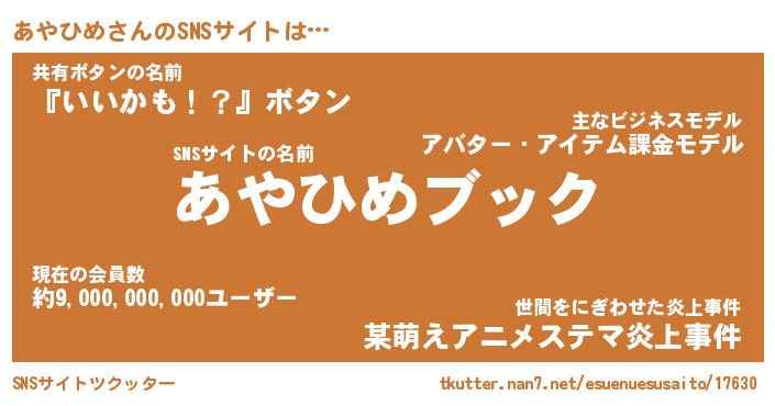 | 男性向けラノベタイトル風あだ名 | 『アヤヒメアートオンライン』 |