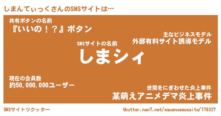 | 男性向けラノベタイトル風あだ名 | 『しまんてぃっくの憂鬱』 |