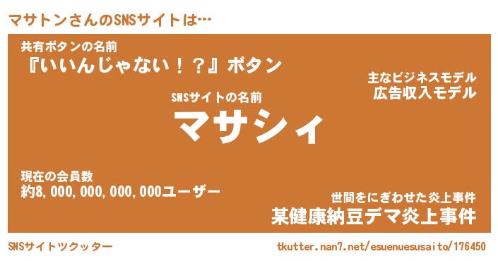 | 男性向けラノベタイトル風あだ名 | 『マサトンの憂鬱』 |