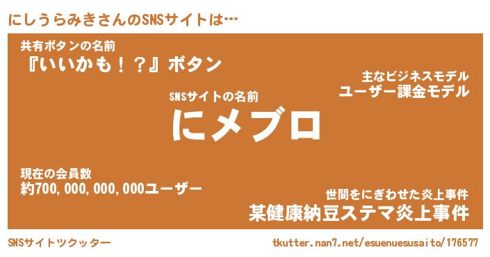 | 胡散臭い通販商品みたいなあだ名 | 『モテモテ間違いなし水晶球…その名も「にしうらみき」』 |