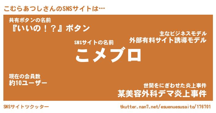 こむらあつしさんのSNSサイトをツクッター!