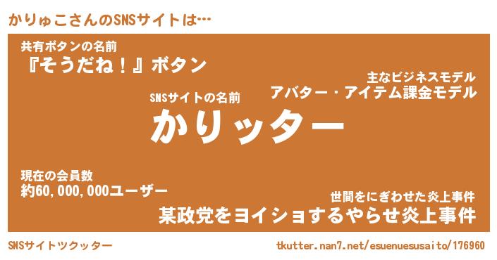| 肩書あだ名 | 『かりゅこ御曹司』『かりゅこ国家主席』 |