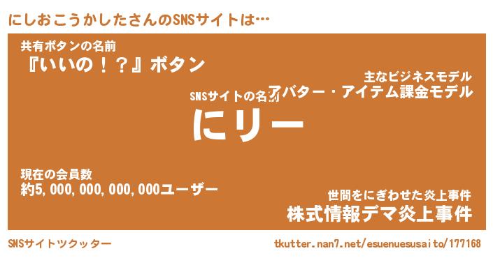 | 肩書あだ名 | 『にしおこうかしたCEO』 |