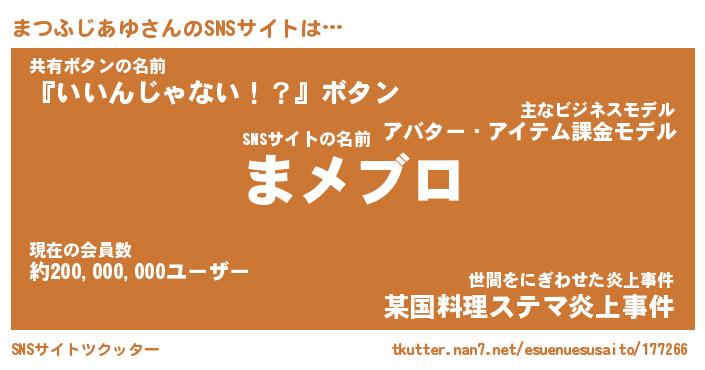 | 肩書あだ名 | 『まつふじあゆCEO』『まつふじあゆ班長』 |