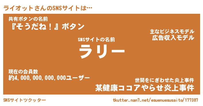 | 肩書あだ名 | 『ライオットCEO』『ライオット大統領』 |
