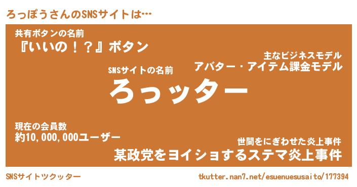 | 草はえルンゴwww …「ツクッター」 | 12月29日 07:12 |