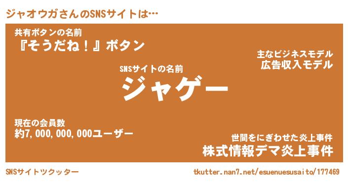 | 欧米人風あだ名 | 『マイケルジャオウガ』 |