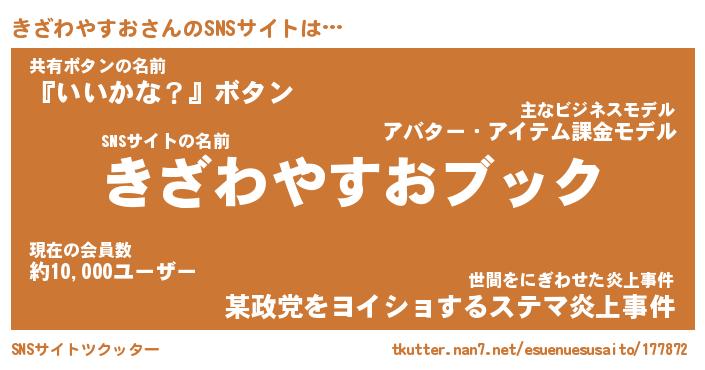 | 男性向けラノベタイトル風あだ名 | 『キザワヤスオアートオンライン』 |
