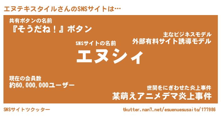 | 男性向けラノベタイトル風あだ名 | 『エヌテキスタイルの憂鬱』 |