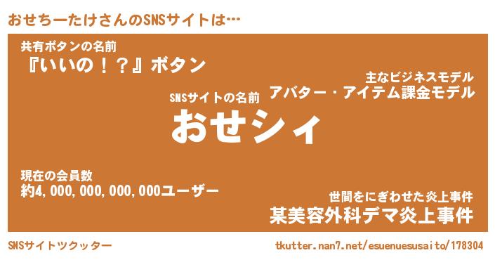 | 胡散臭い通販商品みたいなあだ名 | 『必ず成功するブレスレット…その名も「おせちーたけ」』 |
