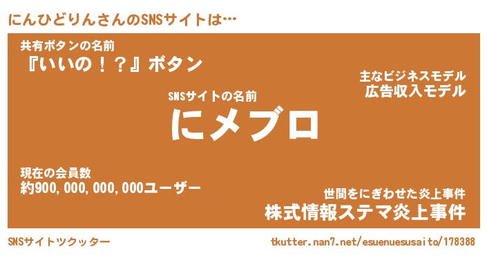 | ポケモン風あだ名 | 『ニンチュウ』『ニンヒダネ』 |