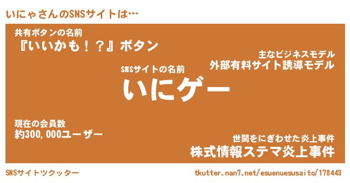 | 男性向けラノベタイトル風あだ名 | 『いにゃの憂鬱』 |
