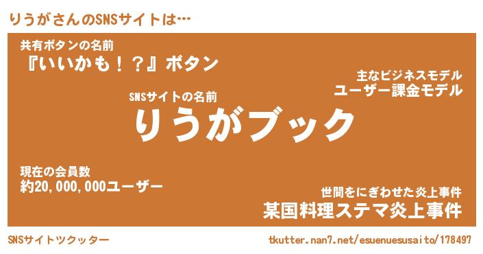 | 欧米人風あだ名 | 『マイケルりうが』『りうがクリステル』 |