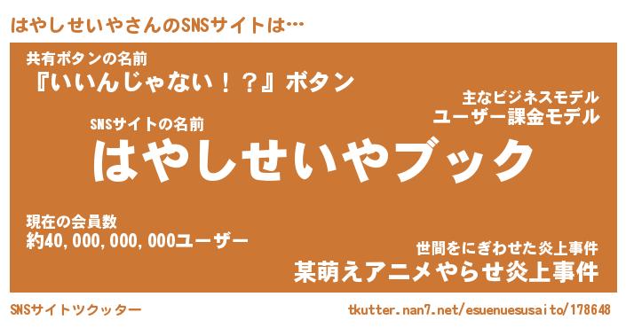 | 男性向けラノベタイトル風あだ名 | 『ハヤシセイヤアートオンライン』 |