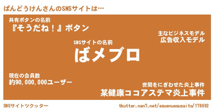 | 肩書あだ名 | 『ばんどうけんCEO』『ばんどうけん団長』 |