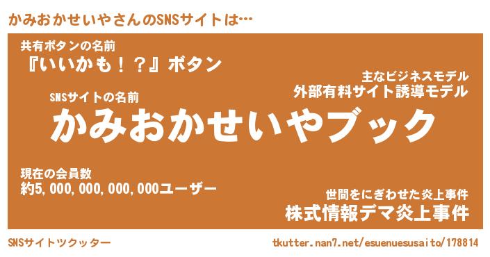 | 男性向けラノベタイトル風あだ名 | 『カミオカセイヤアートオンライン』 |