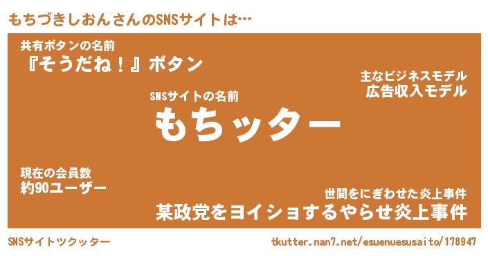| 男性向けラノベタイトル風あだ名 | 『モチヅキシオンアートオンライン』 |