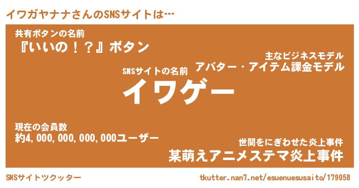 | 欧米人風あだ名 | 『マイケルイワガヤナナ』 |