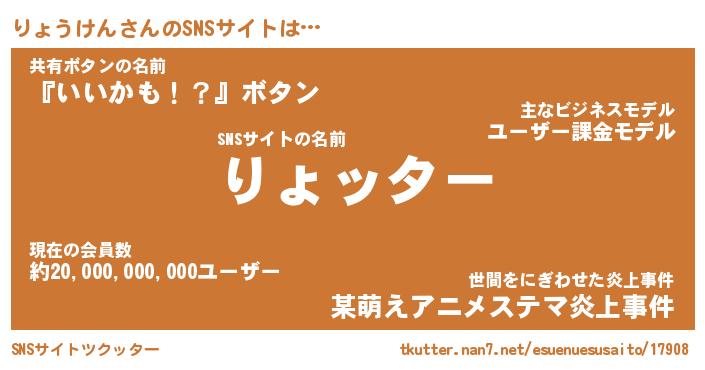 | ファンタジー風あだ名 | 『リョフェル』『エターナルリョウケンー』 |