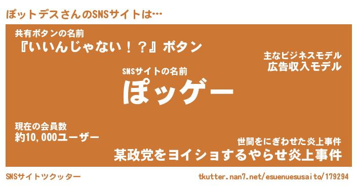 | 男性向けラノベタイトル風あだ名 | 『ぽットデスの憂鬱』 |