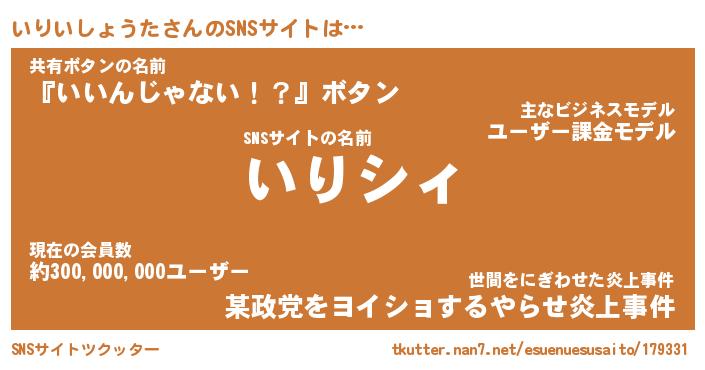 | 男性向けラノベタイトル風あだ名 | 『いりいしょうたの憂鬱』 |
