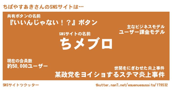 | 肩書あだ名 | 『ちばやすあきCEO』『ちばやすあき団長』 |