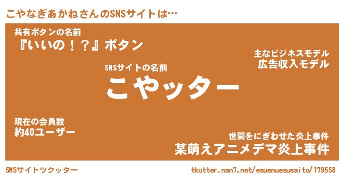 | 男性向けラノベタイトル風あだ名 | 『コヤナギアカネアートオンライン』 |