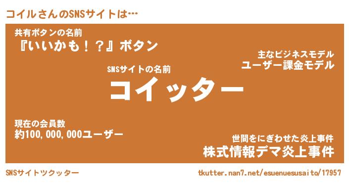 | 男性向けラノベタイトル風あだ名 | 『コイルアートオンライン』 |