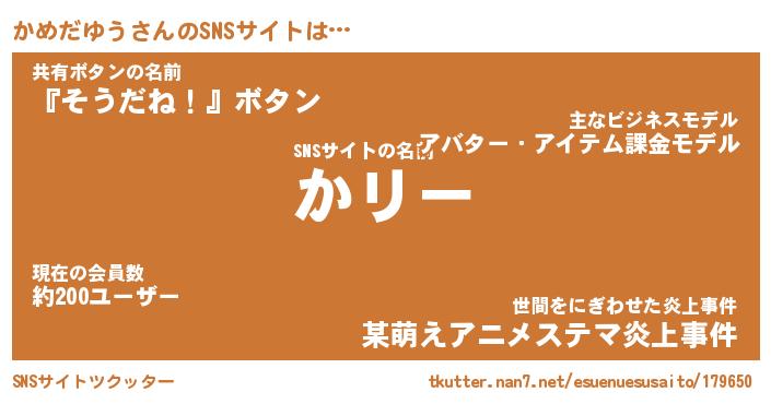 | ファンタジー風あだ名 | 『カメフェル』『エターナルカメダユウー』 |