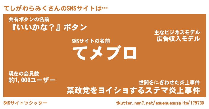 | ヘコむあだ名 | 『てしにゅー』『豆乳』『てしお』 |