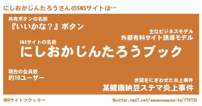 | ヘコむあだ名 | 『にしにゅー』『酢こんぶ』『にしを』 |