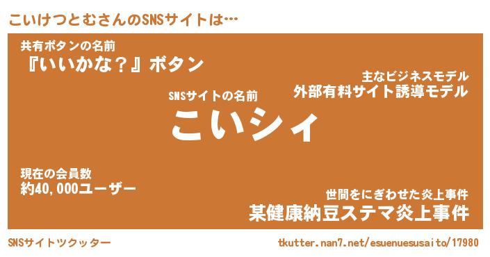 | 男性向けラノベタイトル風あだ名 | 『こいけつとむの憂鬱』 |