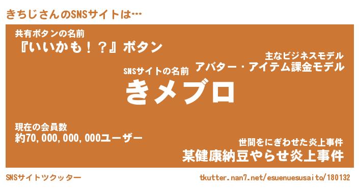 | ヘコむあだ名 | 『きちもー』『なまこ酢』『きちっぺ』 |