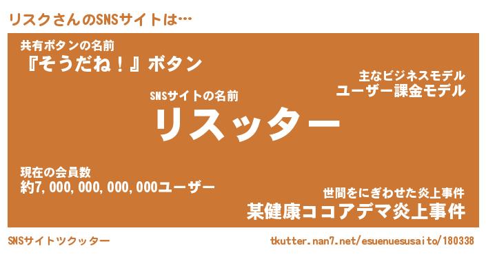 | ポケモン風あだ名 | 『リスチュウ』『リスクダネ』 |