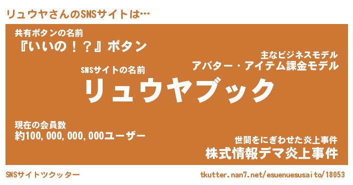 | 肩書あだ名 | 『リュウヤCEO』『リュウヤ総理大臣』 |