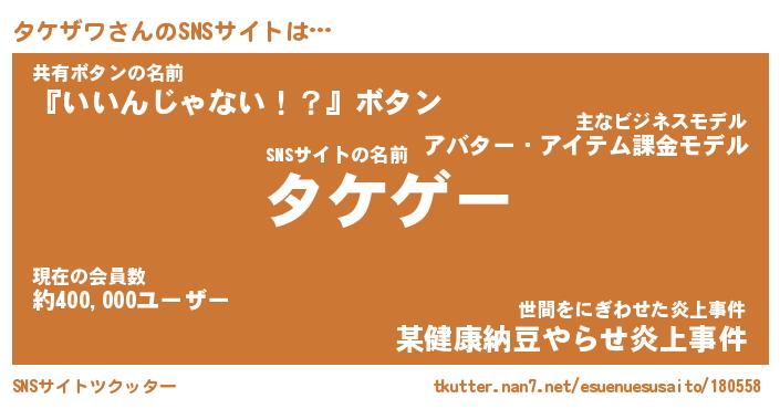 | ファンタジー風あだ名 | 『タケフェル』『エターナルタケザワー』 |