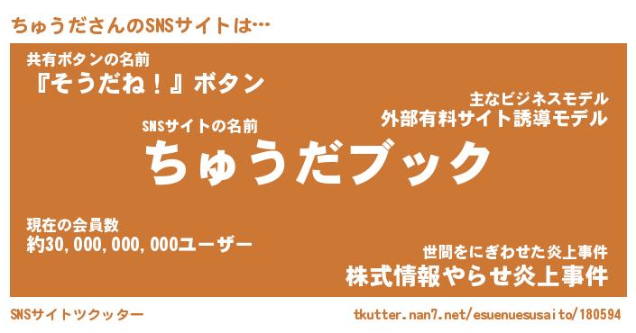 | ツイッター | ちゅうださんのツイッターID『namakemono_nyan』 |