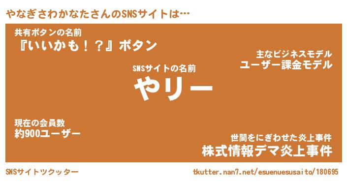 | 肩書あだ名 | 『やなぎさわかなた社長』 |