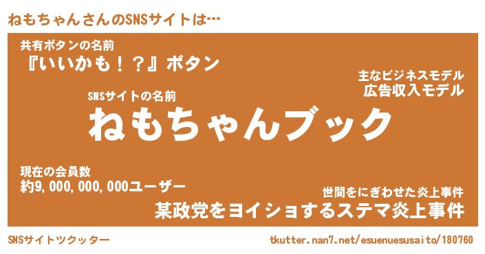 | 胡散臭い通販商品みたいなあだ名 | 『億万長者になれるブレスレット…その名も「ねもちゃん」』 |