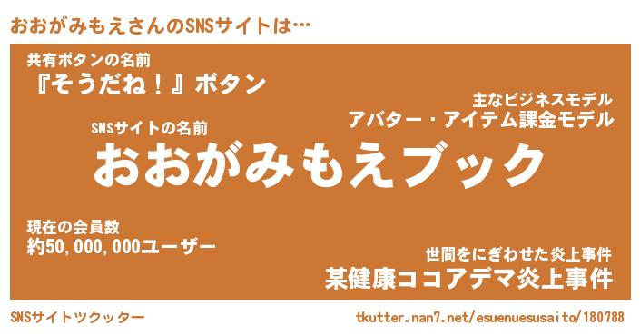| 胡散臭い通販商品みたいなあだ名 | 『億万長者になれるブレスレット…その名も「おおがみもえ」』 |