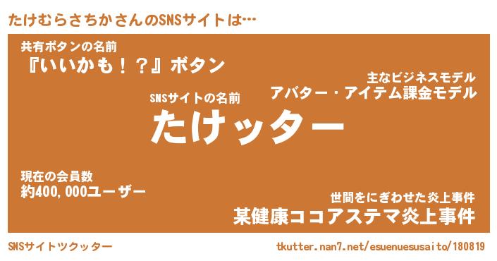 | 男性向けラノベタイトル風あだ名 | 『タケムラサチカアートオンライン』 |