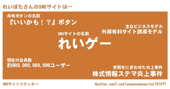 | 伝説のあだ名 | 『伝説のスナイパーれいぽた』 |