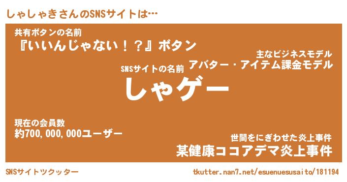 | 男性向けラノベタイトル風あだ名 | 『しゃしゃきの憂鬱』 |