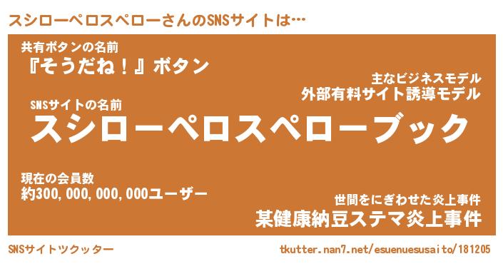 | 胡散臭い通販商品みたいなあだ名 | 『億万長者になれる霊験あらたかなお札…その名も「スシローペロスペロー」』 |