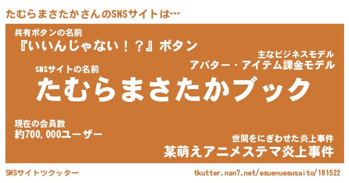 | 女子向けラノベタイトル風あだ名 | 『誰かこのたむらまさたかを説明してください! ~契約から始まるウェディング~』 |