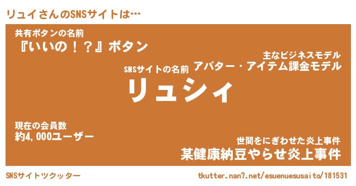 | ヘコむあだ名 | 『リュにゅー』『レバニラ』 |