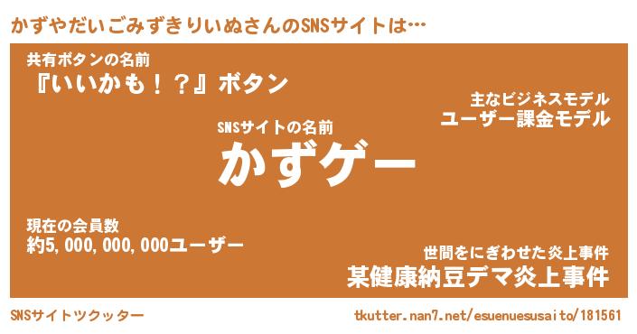 | ツイッター | かずやだいごみずきりいぬさんのツイッターID『kikurage_idle』 |