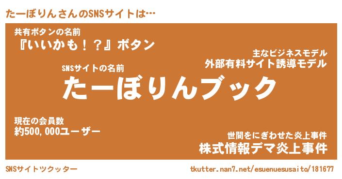 | 胡散臭い通販商品みたいなあだ名 | 『億万長者になれる霊験あらたかなお札…その名も「たーぼりん」』 |