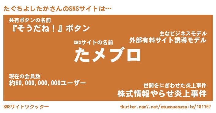 | 肩書あだ名 | 『たぐちよしたか店長』 |