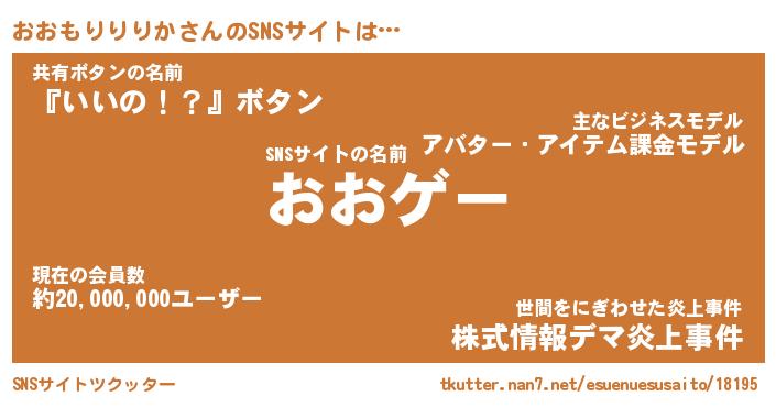 | 肩書あだ名 | 『おおもりりりかCEO』 |
